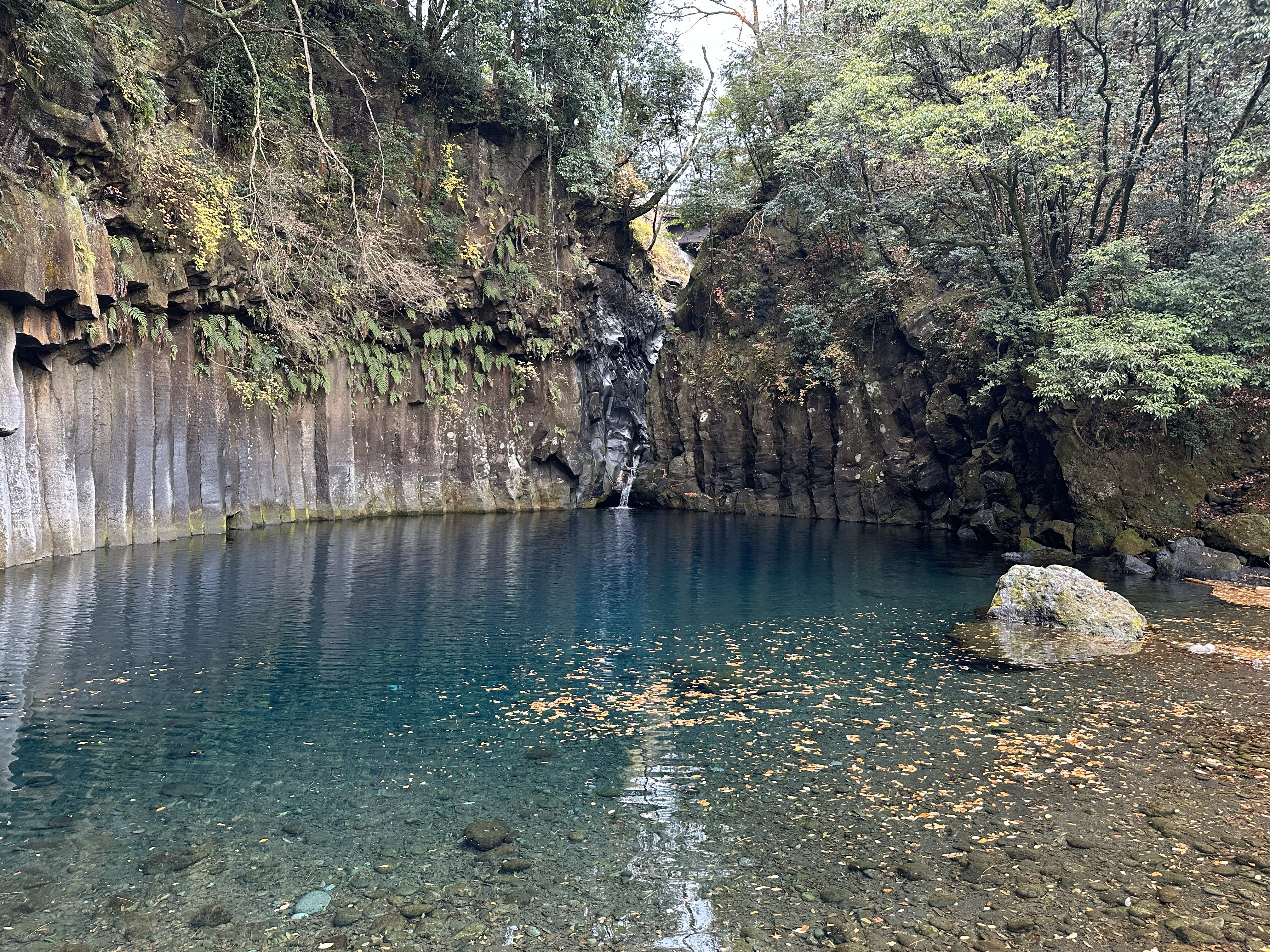 次に向かった聖地は、影ヶ島渓谷の屏風岩。ここも真のパワースポットのひとつですが、ここに繋がっている龍管の色と滝つぼの色がリンクしていて、神秘的な雰囲気を感じる事が出来ました。