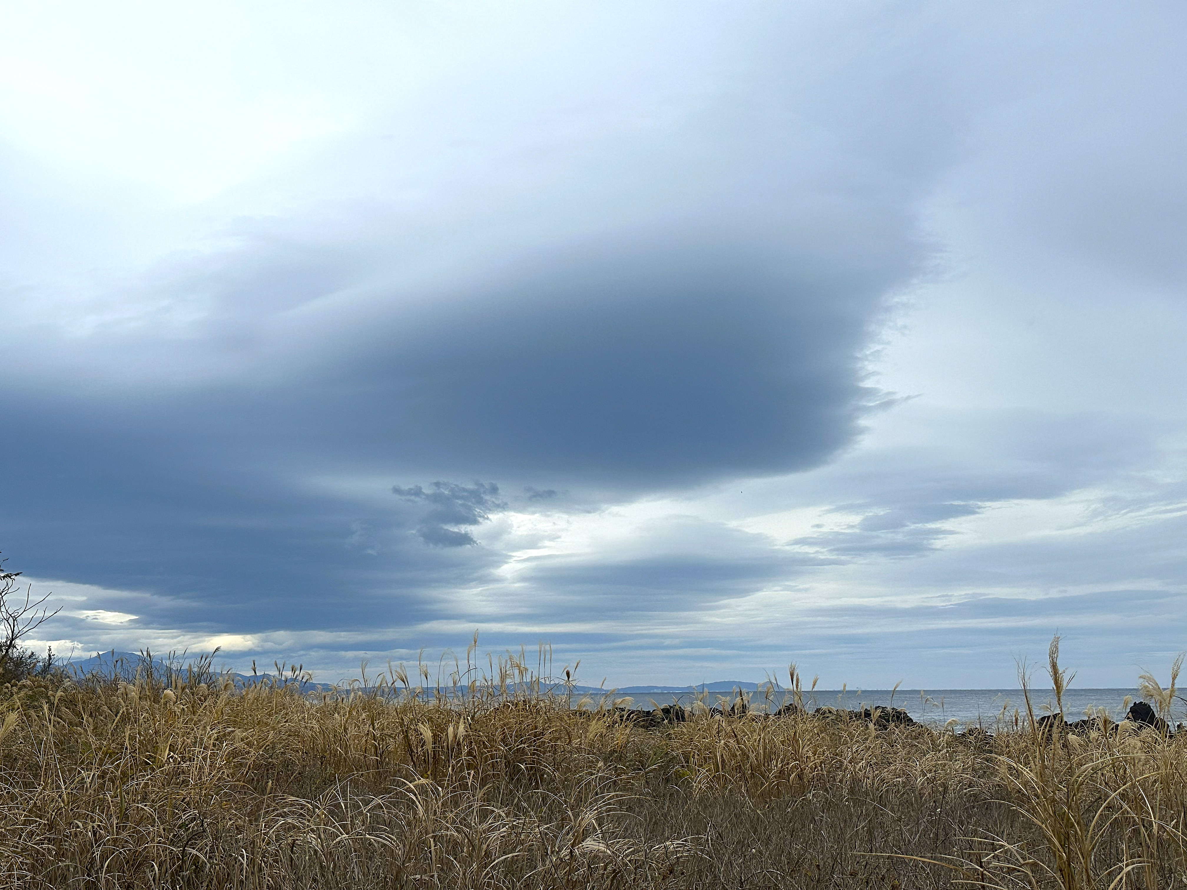 この日は豪雨だったり、濃霧だったりで大変な一日ではありましたが、レンズ雲のような不思議な雲を何度も目撃しました。撮った時は気付きませんでしたが、この写真の雲にうっすら彩雲が見られました。