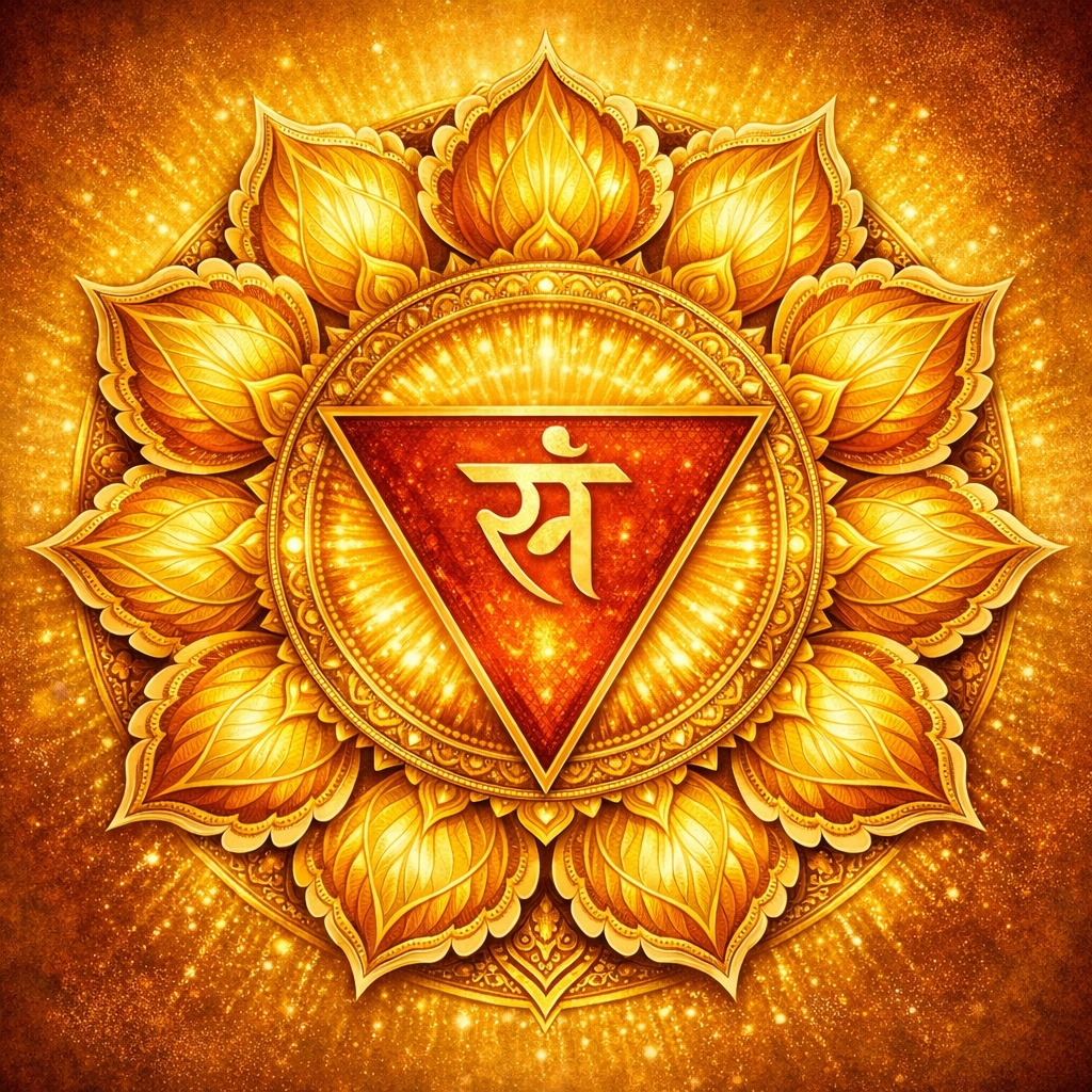 第三チャクラは、サンスクリット語で「マニプーラ」と呼ばれます。「マニ」は「光る宝石」、「プーラ」は「場所・城」を意味し、「光る宝石のある場所」――つまり、輝くエネルギーが凝縮された場所であることを表しています。